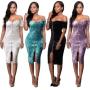 Fashion women‘s sexy mesh strappy print tie-dye irregular dress