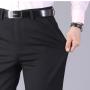 Men‘s Business Suit Pants, Autumn Winter Fleece Lined Thickened Stretch Trousers, Middle-Age Loose Straight Leg Casual S