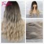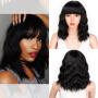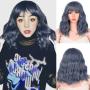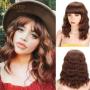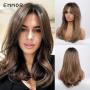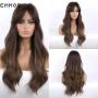 Emmor Ombre Dark Brown Wave Synthetic Hair Wigs with Bangs High Temperature Wavy Cosplay Daily Wig for American Women