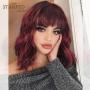 Stamped Glorious 14inches Natural Wave Wig Bob Red Wig With Bangs Synthetic Short Wigs for Women Fiber Hair