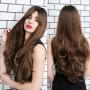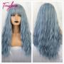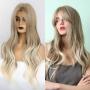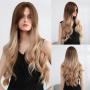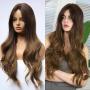Long Water Wavy Golden Brown Wigs Brown Blonde highlight Synthetic Wigs with Bangs Wigs For Women Cosplay Heat Resistant